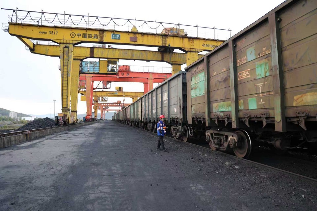 国庆中秋长假,口岸大宗货物运输愈发繁忙。秋风已裹挟着寒意,但黄凯的额角却渗出了细密的汗珠。他俯身仔细检查一节满载煤矿的车辆,确认加固铁丝是否牢靠,车体有无变形,车辆重点部位有无损坏。对讲机里不时传来指令,他需要快速在不同股道间转换,确保列车准点交接。