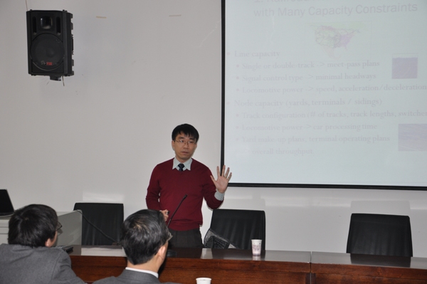 17日下午,周学松教授在我院8楼学术厅用全英文作了题为“列车运行图铺画模型和算法:过去、现在和将来”的学术报告,并与到会的100多名师生进行了深入的交流和讨论。当天晚上,周学松教授还与交通工程学科部分教师进行了2个多小时的面对面交流。