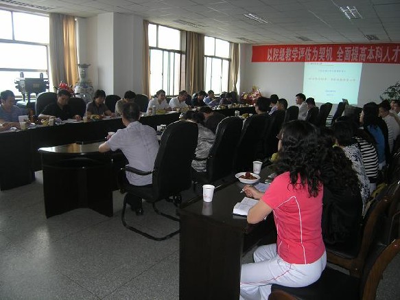 评估工作汇报会前,牛惠民院长发表了热情洋溢的致辞,对专家组莅临我院开展教学评估工作表示衷心的感谢和热烈的欢迎。朱昌锋副院长从学院的沿革、办学思 路、专业概况、师资队伍建设、教学改革与建设、教学管理、学风建设、教学效果等方面,对学院两年来的教学工作进行了全面的总结,并对学院十二五期间的教学 工作进行了展望。评估组在听取汇报的基础上,详细地检查了学院的教学文档、教学管理文件以及实验室,对我院在国家质量工程、实验室建设、教学质量监控、师 资队伍建设以及国家级教学成果奖等方面取得的成绩给予了肯定。