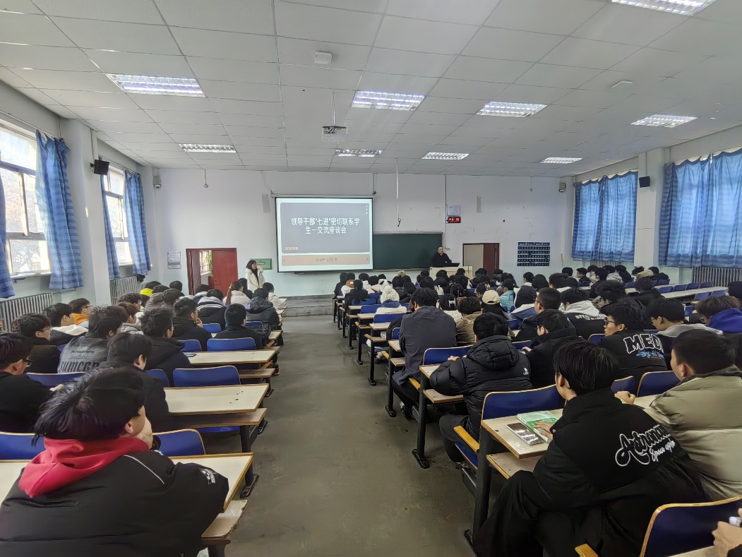 根据学校党委“七进”工作部署,联系我院学生班级的各职能部处领导干部2024年12月15日至2025年1月7日期间陆续深入学院班级开展了形式多样的联系班级活动,通过参加班会、召开座谈会、走进宿舍等形式与学生进行深入交流,对学生进行安全教育、励志教育、专业教育、诚信教育、就业指导等,了解学生思想动态,为学生答疑解惑。