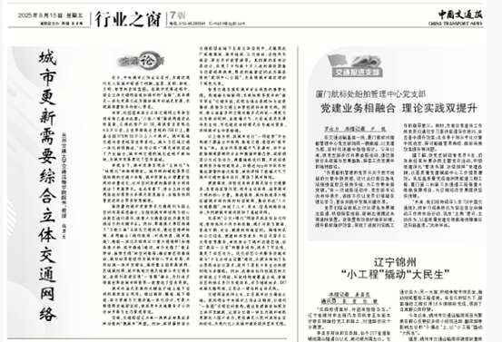 2025年8月1日,我院院长钱勇生教授在《光明日报》第二版“光明论坛”栏目,发表了题为《城市更新需要综合立体的交通网络》的署名文章。文章发表后,迅速被求是网、光明网、经济日报网、人民资讯、法制网、中工网等数十家主流媒体转载,在交通运输领域引起广泛共鸣,为城市更新与交通网络融合发展提供了理论支撑。《中国交通报》8月15日也全文转载了该文,这体现了行业对该研究成果的高度认可。