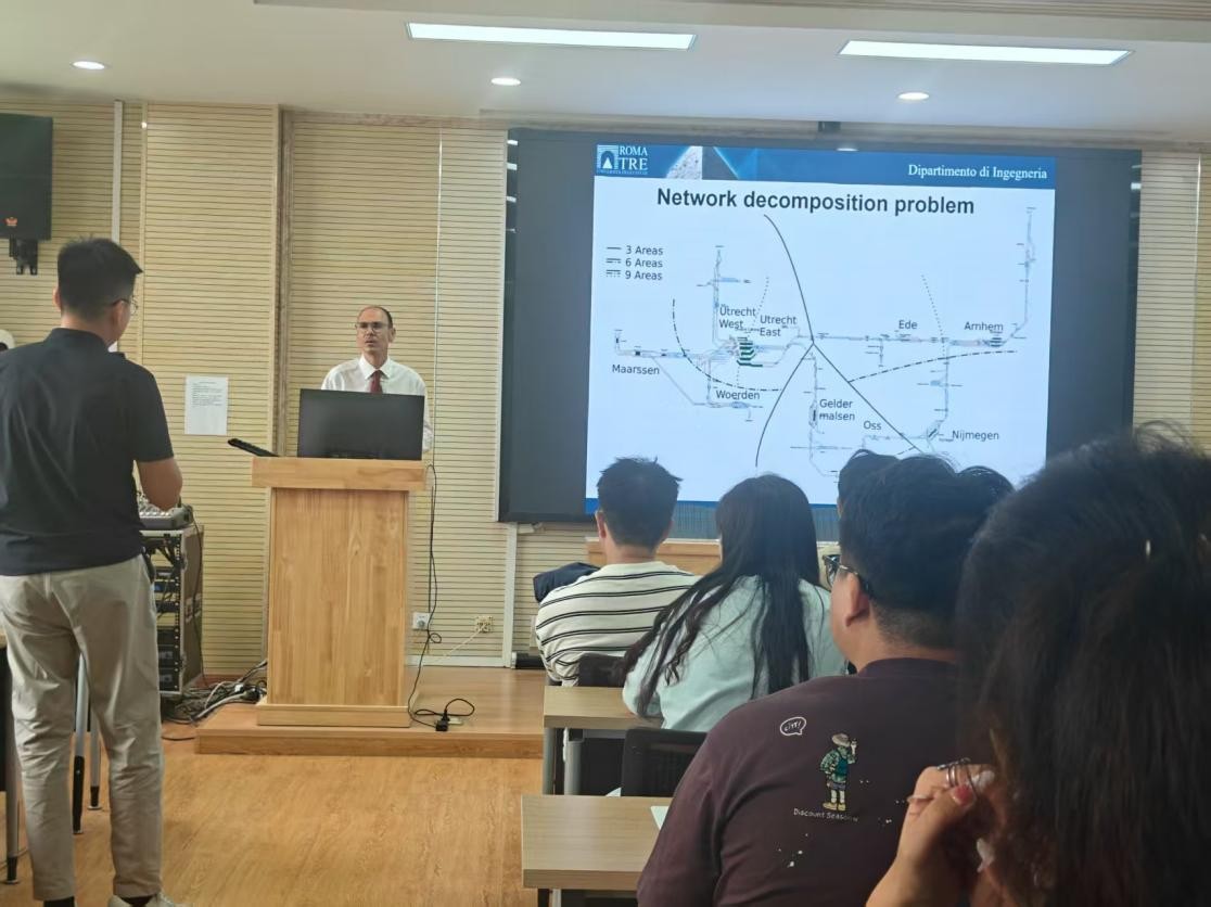 在互动环节中,师生们围绕多区域调度模型的建模细节、算法实现与工程应用等问题踊跃提问,Andrea D'Ariano教授逐一进行了深入浅出的解答。现场学术氛围浓厚,思维碰撞热烈,有效拓宽了师生们在智能调度与运筹优化领域的研究视野。
