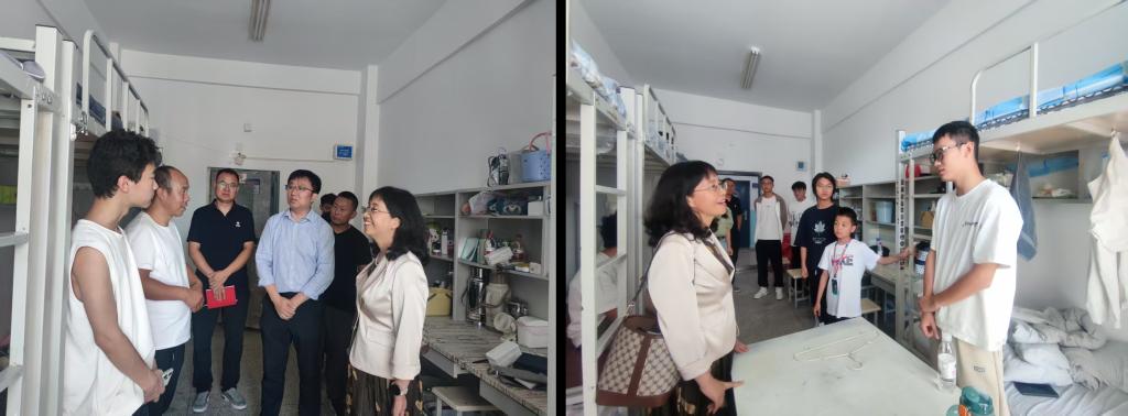 家长见面会后,学院领导深入2025级新生宿舍进行走访,与新生和尚未离校的家长们展开面对面交流,查看宿舍设施和环境,关心同学们的生活起居,认真听取家长们对学院工作的意见和建议。柳德玉特别提醒同学们,要提高安全意识,尽快适应集体生活,处理好室友关系,互相关心、共同进步。这种“零距离”的接触,让家长们倍感亲切与感动。宿舍走访将学院的关怀直接送达学生生活的最小单元,极大地增强了新生的归属感和家长的信任感,真正实现了“家校共育”从会议桌到床边的延伸。