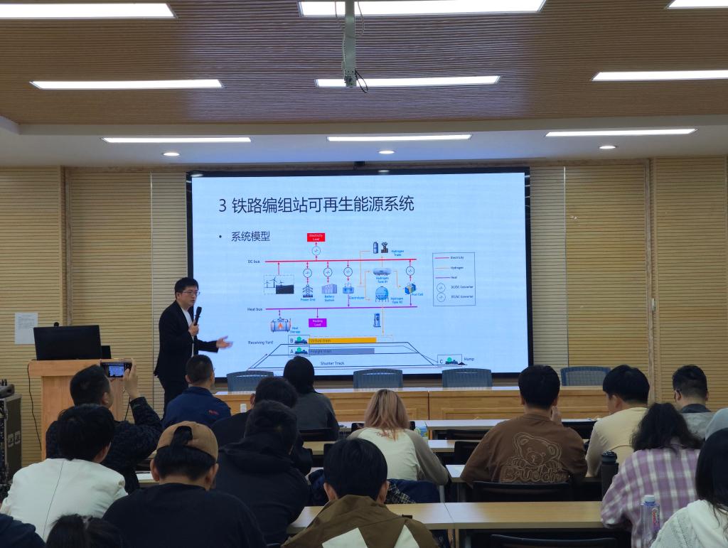 互动环节中,与会师生围绕编组站可再生能源系统的运营成本控制、列车的能源补充带来的影响等问题,与钟庆伦博士展开热烈讨论。大家一致认为,本次报告逻辑严谨、内容前沿,既深入解析了铁路运输组织中的核心技术难题,又为铁路绿色发展提供了创新思路,为相关领域的研究与实践提供了重要指导。
