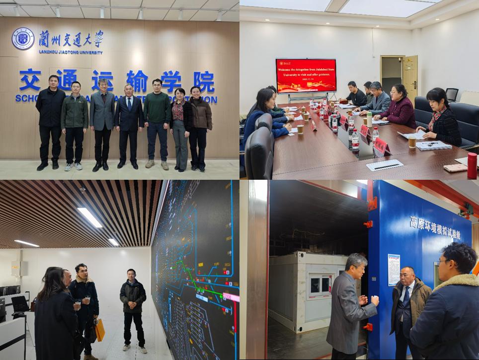11月19日下午,吉尔吉斯斯坦国贾拉拉巴德州立大学校长乌谢诺夫·克涅什别克·朱马别科维奇一行参观访问兰州交通大学交通运输学院,就深化国际教育合作展开交流,共商中吉教育合作新路径。