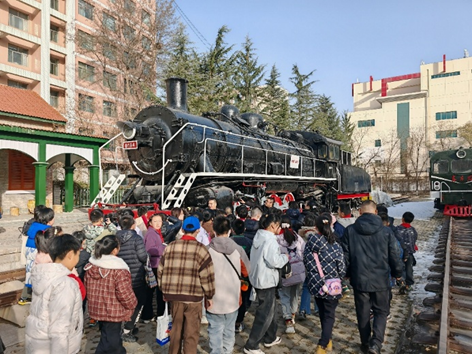 青龙桥火车站前,真实的机车与铁轨成为最生动的课堂。同学们围绕在老师身边,踊跃提问、专注聆听,从机车的结构解析到铁路的发展历程,在科普讲解中自然融入了工程文化与交通强国的思政元素,实现了知识传授与价值引领的同频共振。