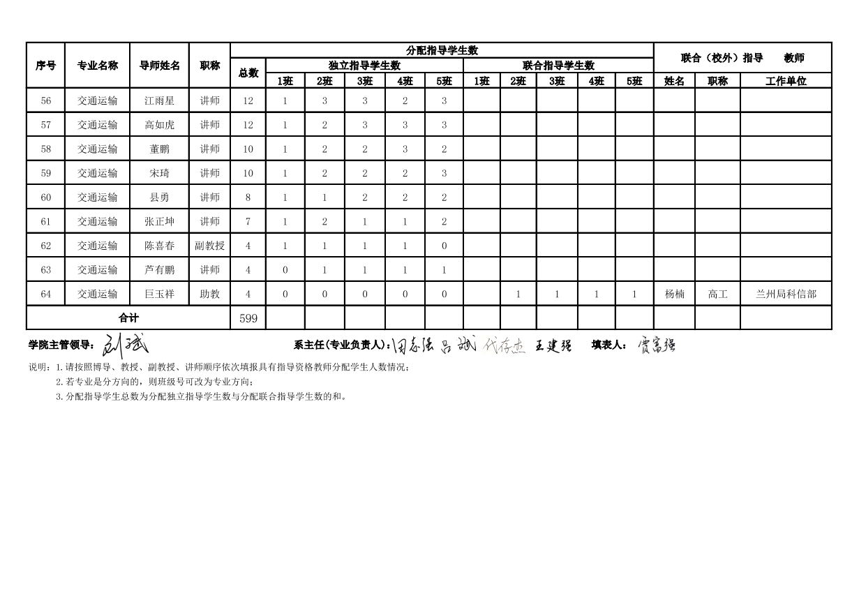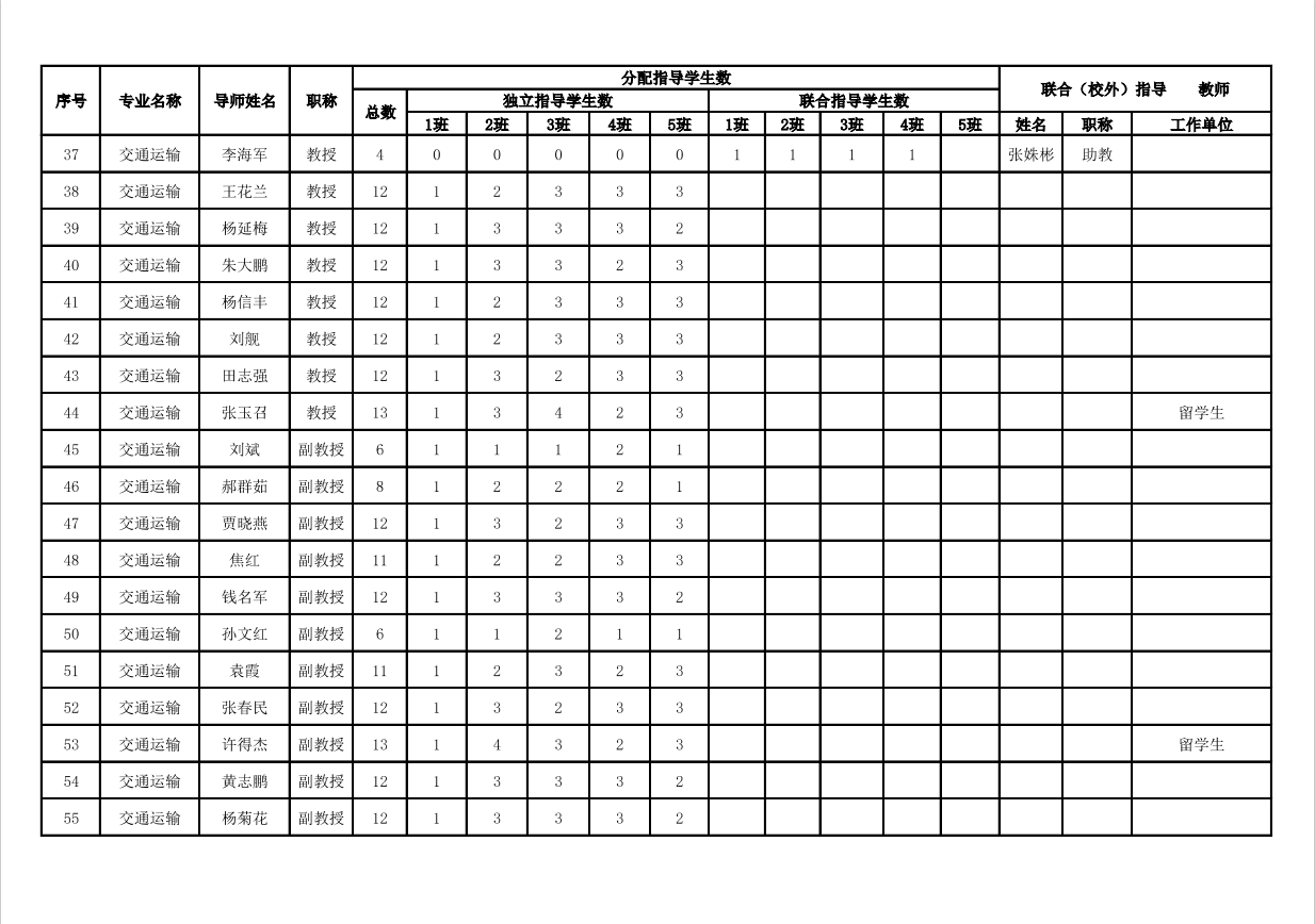 为了深入贯彻工程教育认证OBE教育教学理念,进一步强化毕业设计(论文)全过程管理,为了保证交通运输学院2023届本科生毕业设计(论文)质量和课程教学目标达成,结合《兰州交通大学本科毕业设计(论文)工作管理规定》和《兰州交通大学本科毕业设计(论文)抽查和盲审办法》(处发〔2019〕26号)等相关规定,学院已完成2023届本科毕业设计(论文)指导教师评聘和遴选工作,并进行指导学生人数分配。现将2023届《毕业设计(论文)指导教师信息及指导学生人数统计表》进行公布,详细情况如下: