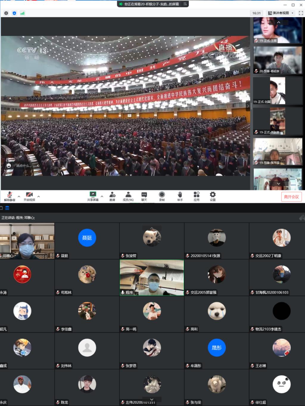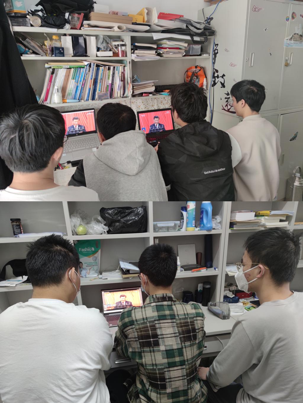 学院通过结合当前疫情防控实际,精心组织部署,做到了观看人员全覆盖。全体党员、入党积极分子,在所在支部,通过党员大会及党日活动的形式,结合疫情防控要求,在线上集中观看和学习研讨。党外教师在家或隔离地自行观看。全体团员以团支部为单位在宿舍内集中观看。入驻北苑9公寓、校内办公室和隔离宾馆的教师,在做好疫情防控工作的同时,做到了学习工作两不误,认真观看、收听开幕会直播。