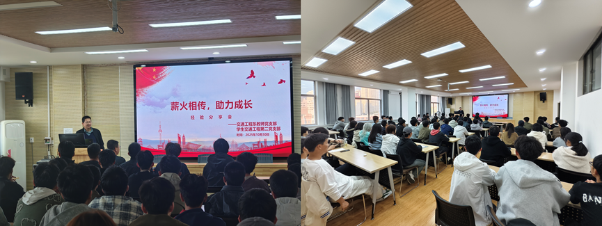为充分发挥优秀学生党员的示范引领作用,帮助2025级新生尽快适应大学生活、明确发展目标,在交通运输学院党委的指导下,交通工程系教师党支部联合学生交通工程第二党支部于10月30日在学院806报告厅举办了“薪火相传,助力成长”主题经验分享会。活动由交通工程系教师党支部宣传委员田小鹏同志主持,支部全体党员及交通工程2502班全体新生参加。