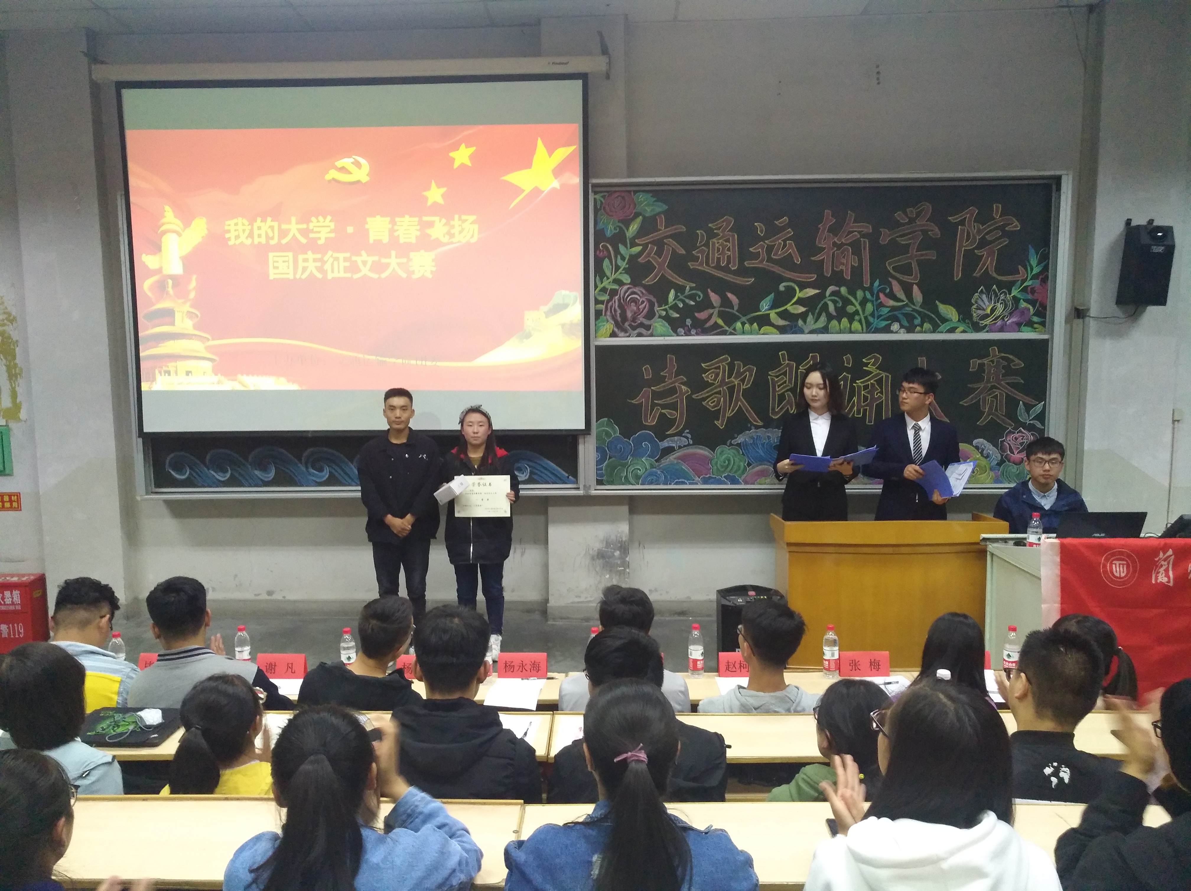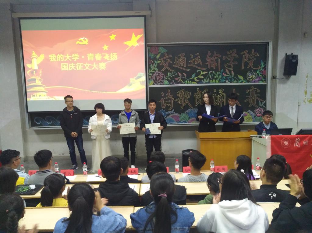 2018年10月13号,交通运输学院院团委“我的大学,青春飞扬”征文比赛颁奖仪式在七教2403圆满举行,10名获奖人员从颁奖嘉宾手中领取到属于一份自己的荣耀和对自己的肯定,藉此我院团委此次举办的“我的大学,青春飞扬”征文活动正式落下帷幕。