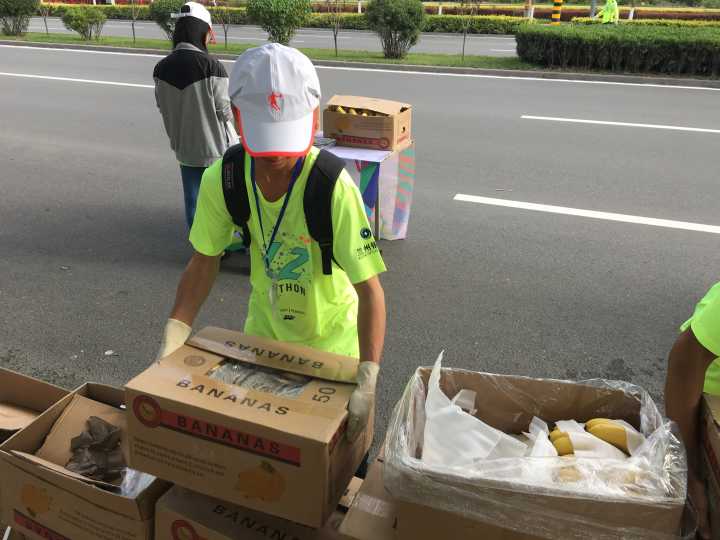 在本次赛事中,我们负责的是补给站和收容车的志愿任务。志愿者们在凌晨3:20于校门口集合。虽然凌晨的气温还很低,可是志愿者们仍然热情高涨,积极前往志愿服务点。比赛开始后,志愿者们一边进行着志愿服务,积极为运动员提供需要的帮助,一边为运动员们呐喊欢呼。