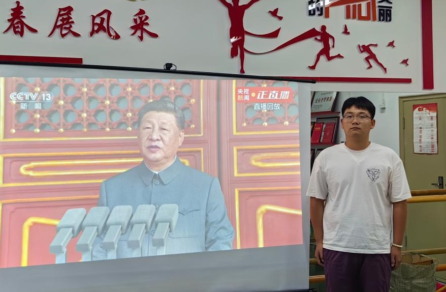 交通运输2401团支部团支书唐家兴激动表示:“阅兵仪式太壮观了!‘请党放心,强国有我’不再只是口号,而是有了具体画面和重量。作为共青团员,我们不仅是国家的未来,更是党的助手和后备军。”