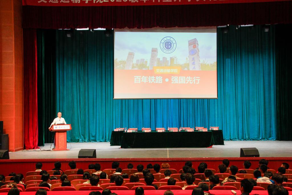 学院院长钱勇生发表讲话,今年学院共录取589名本科新生,其中超半数新生分数超越“211”院校控制线,近50人达到“985”院校水平,生源质量创历史新高。学院交通运输、物流管理、交通工程三个专业全部为国家级一流本科专业建设点,为学子成长搭建一流平台。钱勇生以“世界铁路诞生200周年、中国高铁领跑全球”为切入点,强调新一代交通人正逢“交通强国”建设的关键时期。他希望同学们将个人梦想融入民族复兴的伟大征程中,秉承“尚德励志、博学笃行”的校训,夯实专业基础、积极投身实践、实现全面发展,四年后以过硬本领和家国情怀奔赴祖国最需要的地方。