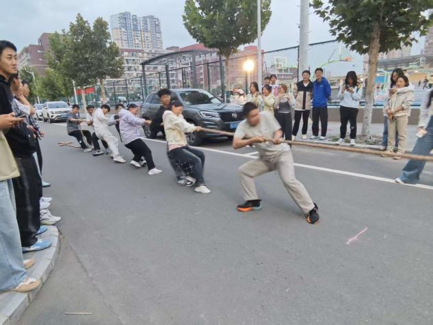 比赛过程中,所有参赛队员都全神贯注,绳索成为双方角力的焦点,队员们紧握长绳、重心后仰,在整齐的口号声中共同发力。现场气氛热烈,场边观众的加油声与场上参赛者的呐喊声交织在一起,每一次僵持与发力都牵动着场边每个人的心弦。在学院的有序组织与同学们的积极参与下,赛事进程平稳顺利,并于9月28日圆满落下帷幕。