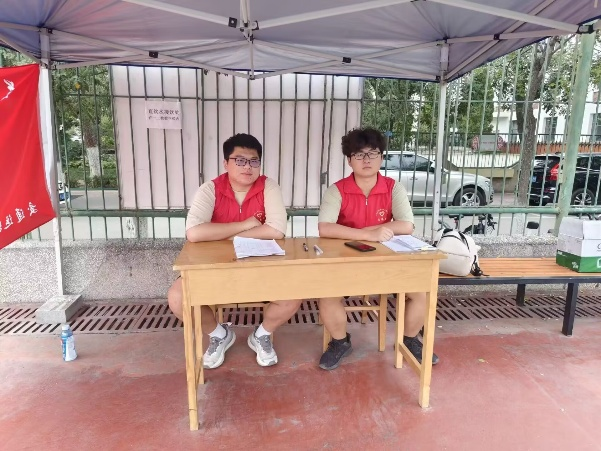 活动中,志愿者严格遵守值班制度,每日按时到岗:物资补给上,提前筹备饮用水,供新生训练间隙补充能量;同时密切关注新生状态,引导体力不支者休息、协助教官维护秩序,还耐心解答军训流程与校园生活疑问,让服务点成为军训场上的“温暖驿站”。
