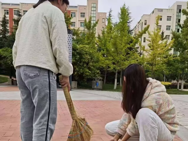 4.“拂去校园尘,迎来书香纯”九教和谐园清扫活动