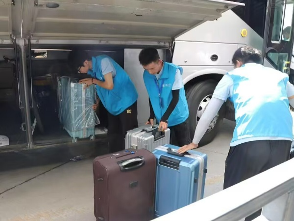 活动中,青协成员高举醒目欢迎牌,满怀期待等候新生。见到新生后,立即上前热情对接:主动帮新生搬运行李,缓解出行负担;耐心解答新生关于校园报到、生活设施的疑问,还贴心分享校园生活小贴士;引导新生前往学校大巴乘车点时,有序组织队伍,确保每位新生都能顺利上车,避免遗漏。