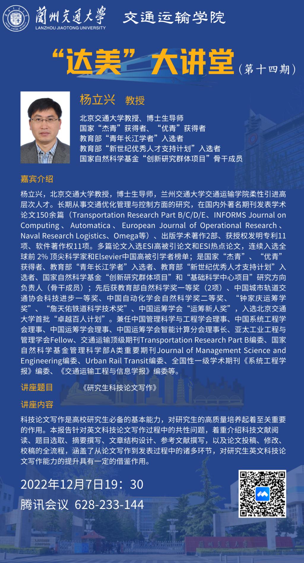 “达美”大讲堂(第十四期) 主讲人:杨立兴 教授