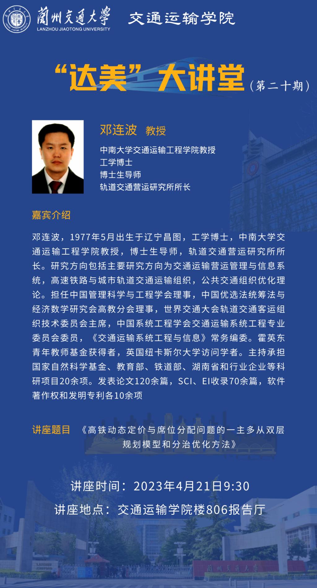 “达美”大讲堂(第二十期) 主讲人:邓连波 教授