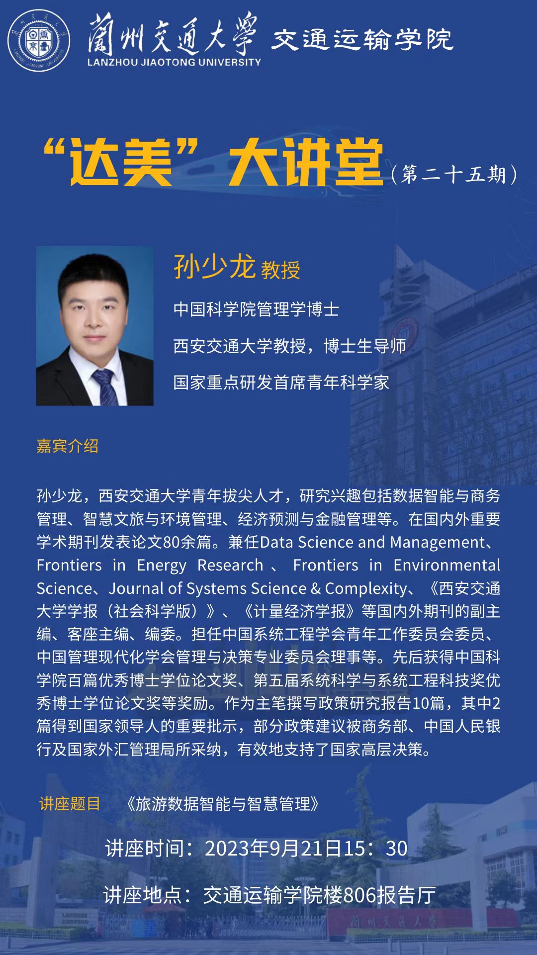“达美”大讲堂(第二十五期) 主讲人:孙少龙 教授