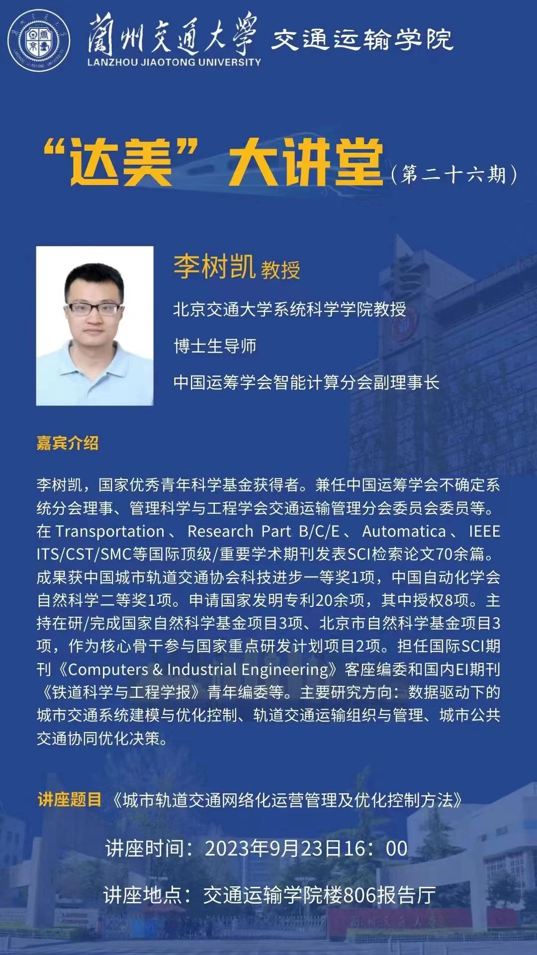 “达美”大讲堂(第二十六期) 主讲人:李树凯 教授