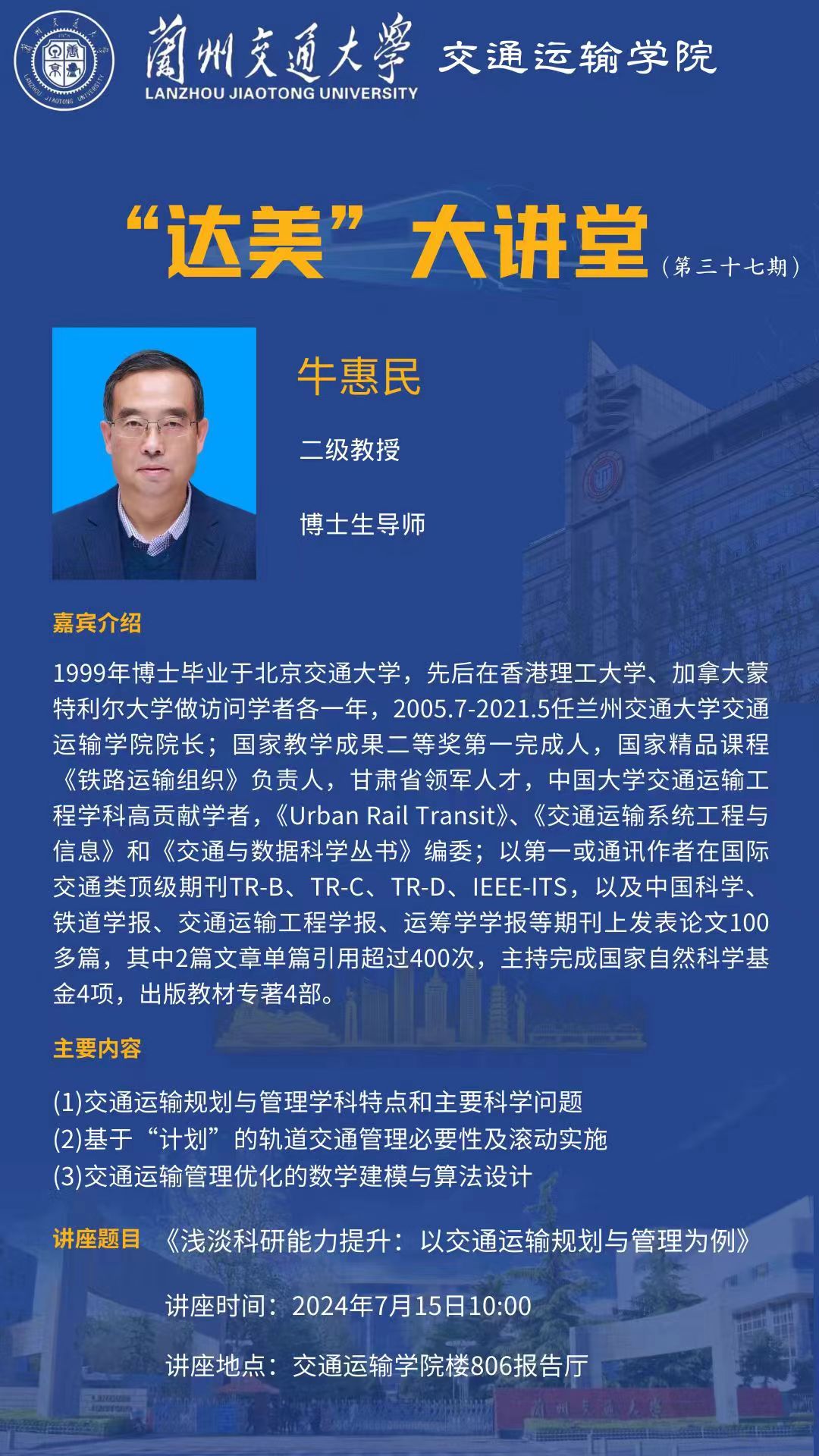 “达美”大讲堂(第三十七期) 主讲人:牛惠民 教授/博士生导师