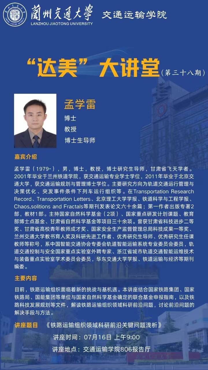“达美”大讲堂(第三十八期) 主讲人:孟学雷 教授/博士生导师