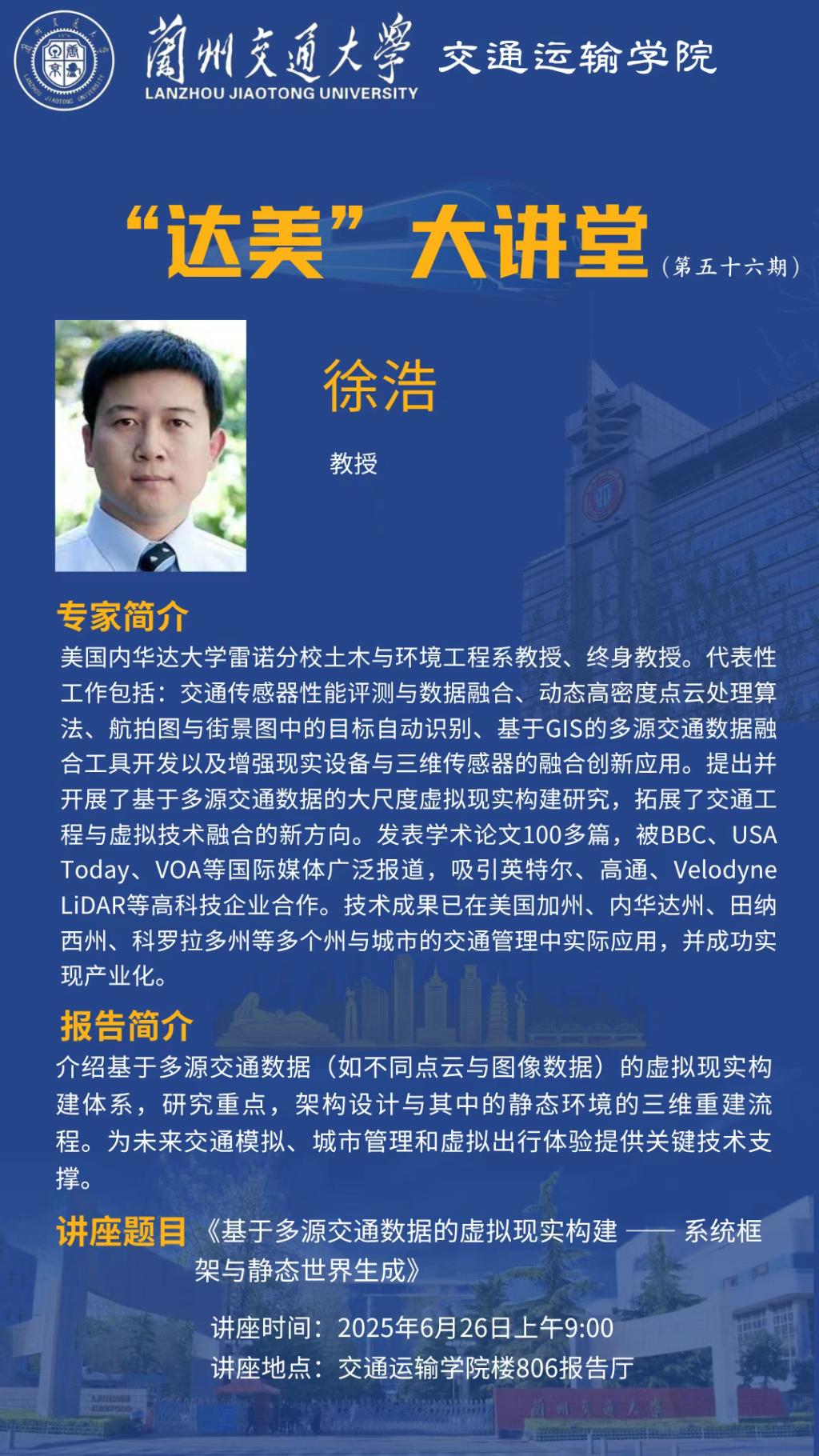 “达美”大讲堂(第五十六期) 主讲人:徐浩 教授/博士生导师