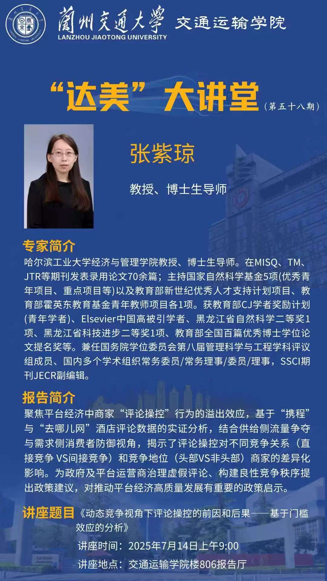 “达美”大讲堂(第五十八期) 主讲人:张紫琼 教授/博士生导师