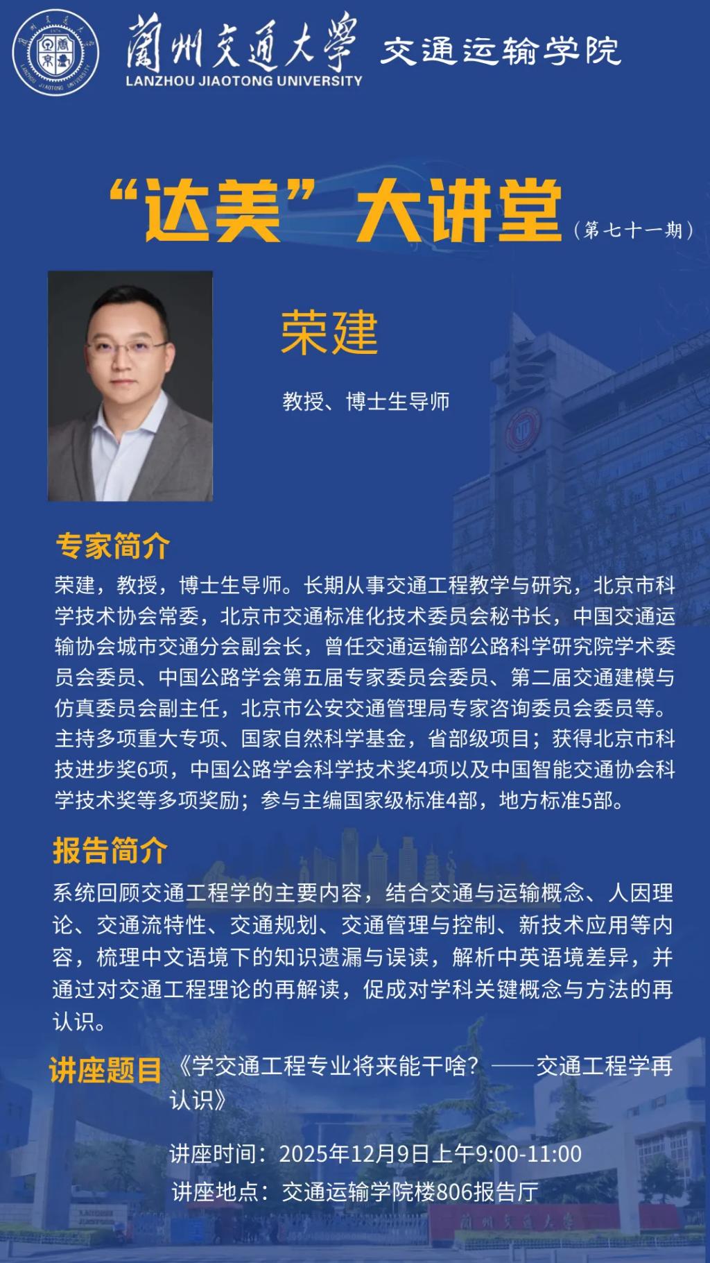 “达美”大讲堂(第七十一期) 主讲人:荣建 教授/博士生导师